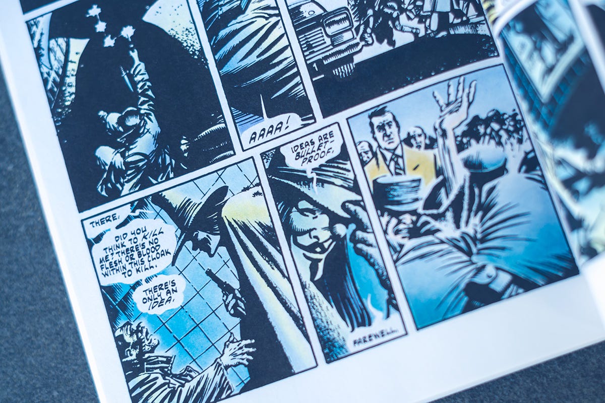 From a bird’s-eye view, this just seems to reinforce V’s point, isn’t it? That ideas are bulletproof?